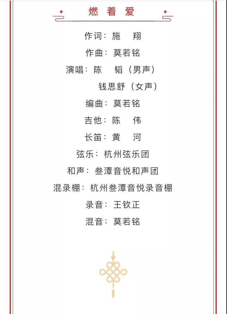 钱思舒说:“很有幸参与录制,作为一名艺术教育工作者,作为一名文艺志愿者,在疫情形势严峻的时刻,理应用自己的歌声尽浙江音乐人的一分力,为一线的医务工作者送去祝福和信心。”钱思舒还与校友陈韬录制了男女声对唱《燃着爱》,以此歌向战斗在抗病毒第一线的广大医务工作者致以最崇高的敬意。