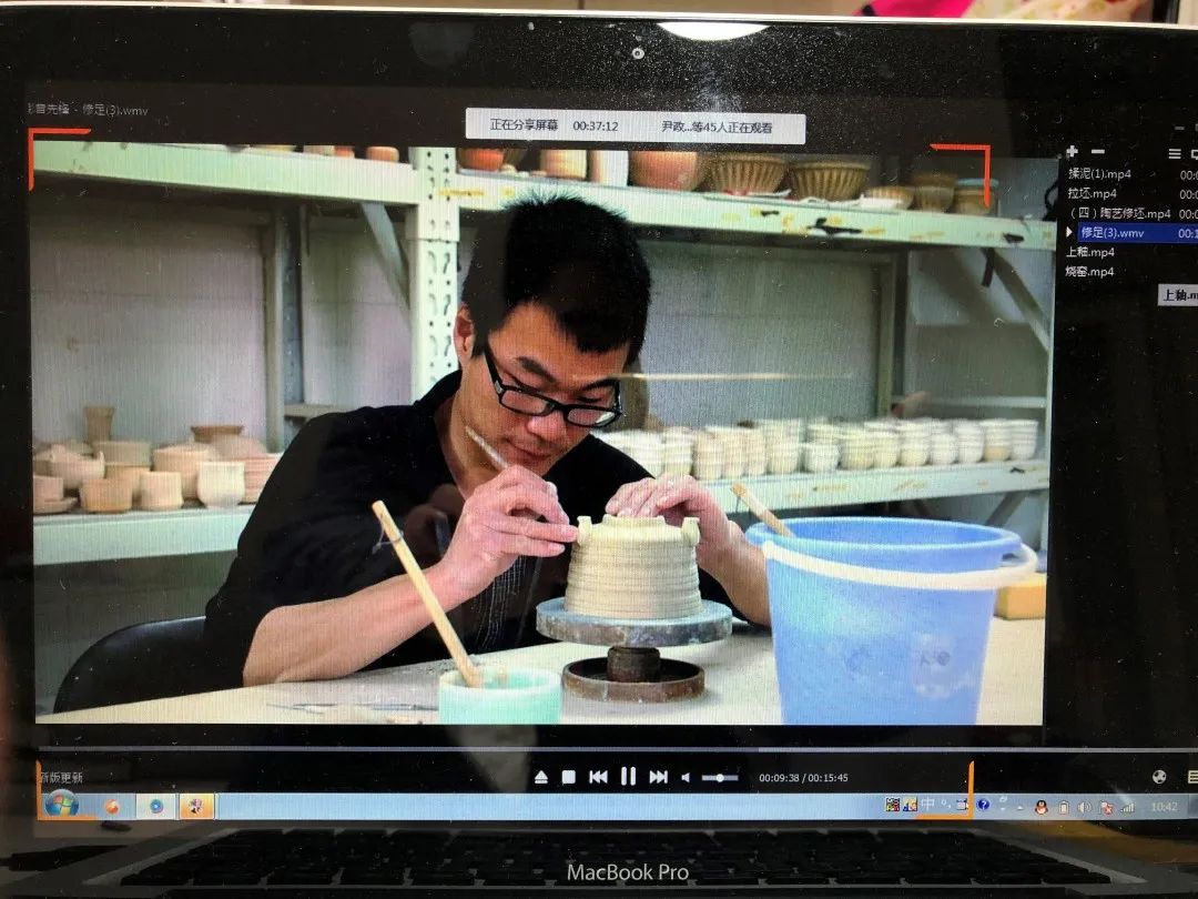 民族传统技艺专业核心课程有青瓷烧造技艺、石雕技艺、水印木刻技艺、汉代器艺、传统印染等。因课程大多需要操作实践,教研室老师们就采用理论联系实践,PPT教学与线下操作直播同步进行的方式进行线上教学,让学生能融会贯通,一目了然。青瓷烧制技艺课程教师通过PPT讲解陶瓷基础——材料及成型方式,通过视频演示器皿制作及烧成(弦纹炉的制作及烧成)让学生更直观地了解青瓷烧制的整个过程。