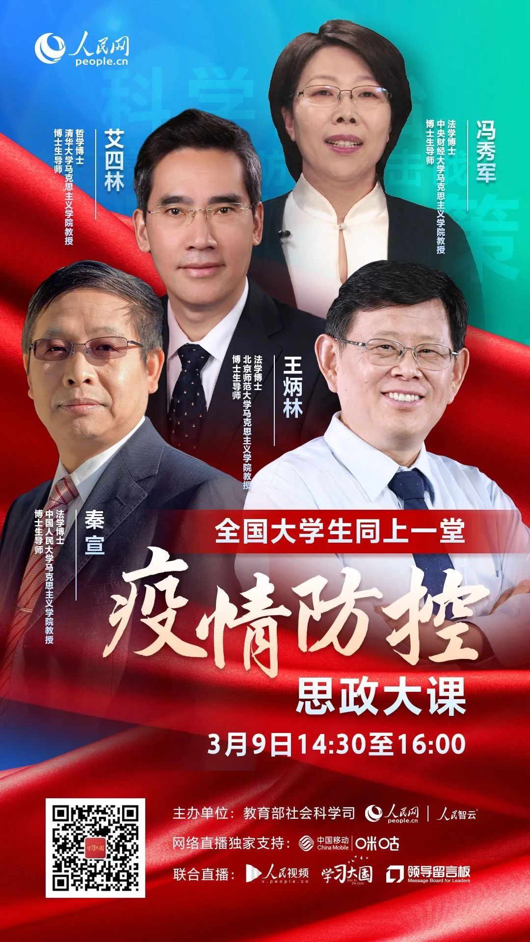 心理健康教育中心专职心理教师钱玉玲:疫情是一场危机,一场考验,更是思政课最生动的现实教材。今天,在这场思政大课上,艾四林教授对“人权”的解读精准到位,鞭辟入里;秦宣教授结合疫情防控具体分析了中国特色社会主义制度的优势如何转化为社会治理效能;王炳林教授倡导的“历史性思维”理念发人深省;冯秀军教授更是用丰富的案例为青年一代解开了中华民族生生不息的精神密码,深情并茂,令人动容。这不仅是面向全国大学生的一堂思政课,对我们这样一线的教育工作者来说更是一次难得的教学示范,激励我们扎根中国大地,满怀理想,饱含深情,决心用一生的真情投入、一辈子的顽强奋斗,踏踏实实干好工作,努力成为青年学生的知心人和引路人。