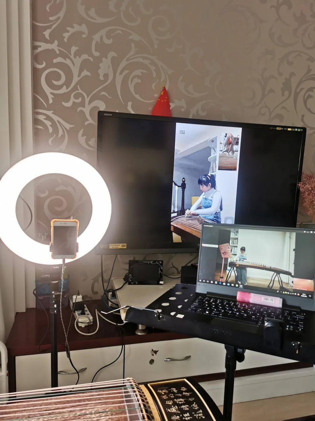 往日的课堂,今日的APP;平时的黑板,现在的屏幕;往日的琴房,今日的书房;平时的排练厅,现在的客厅。别样的线上音乐课堂,一样的精彩纷呈。