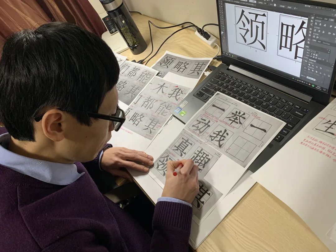 据叶峰泉介绍,《字体设计基础》这门课是广告设计专业最难的一门课,需要脑力和体力结合,但他希望通过练习字体让学生明白“方方正正中国字,堂堂正正中国人”的真正含义。上网课期间,叶峰泉不停地直播,讲解、示范、分享屏幕操作示范,对有疑问的学生单独交流,单独辅导字该怎么写,该怎样一笔成型。
