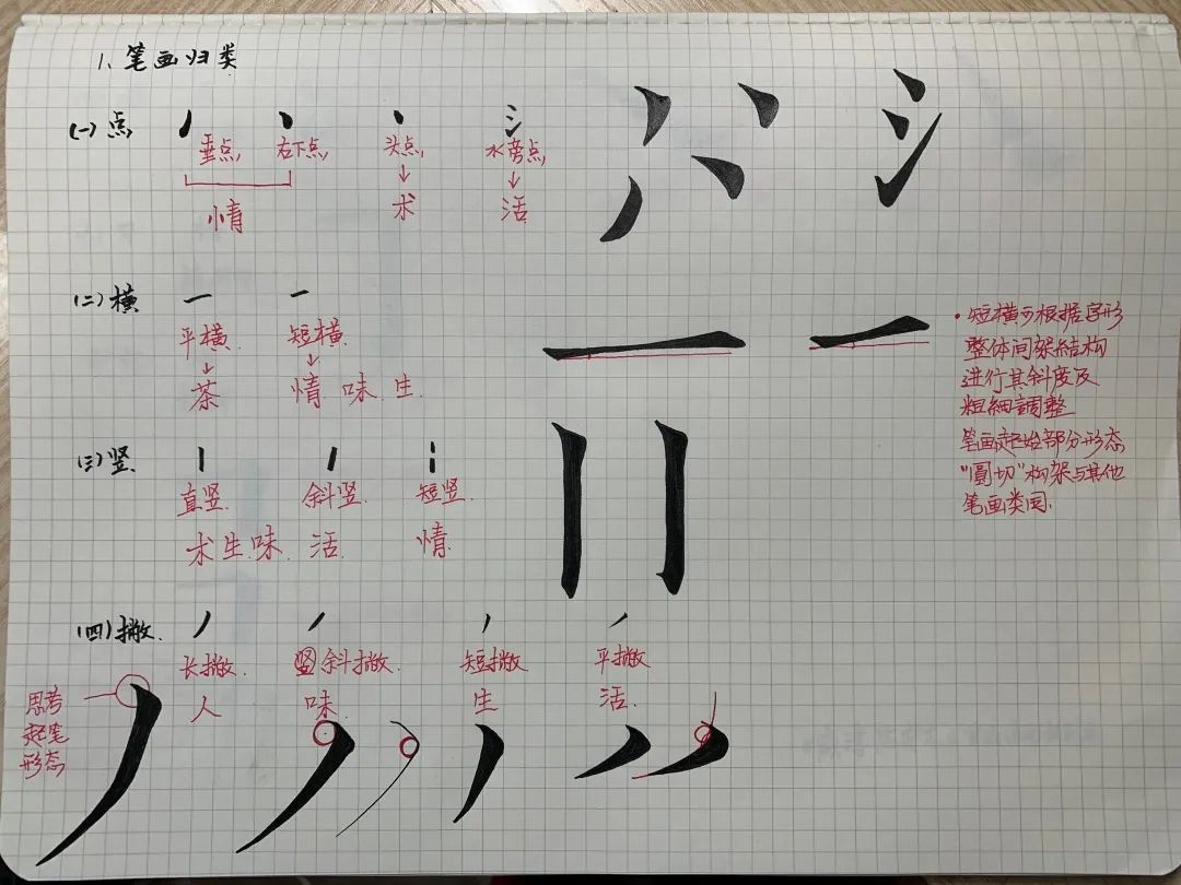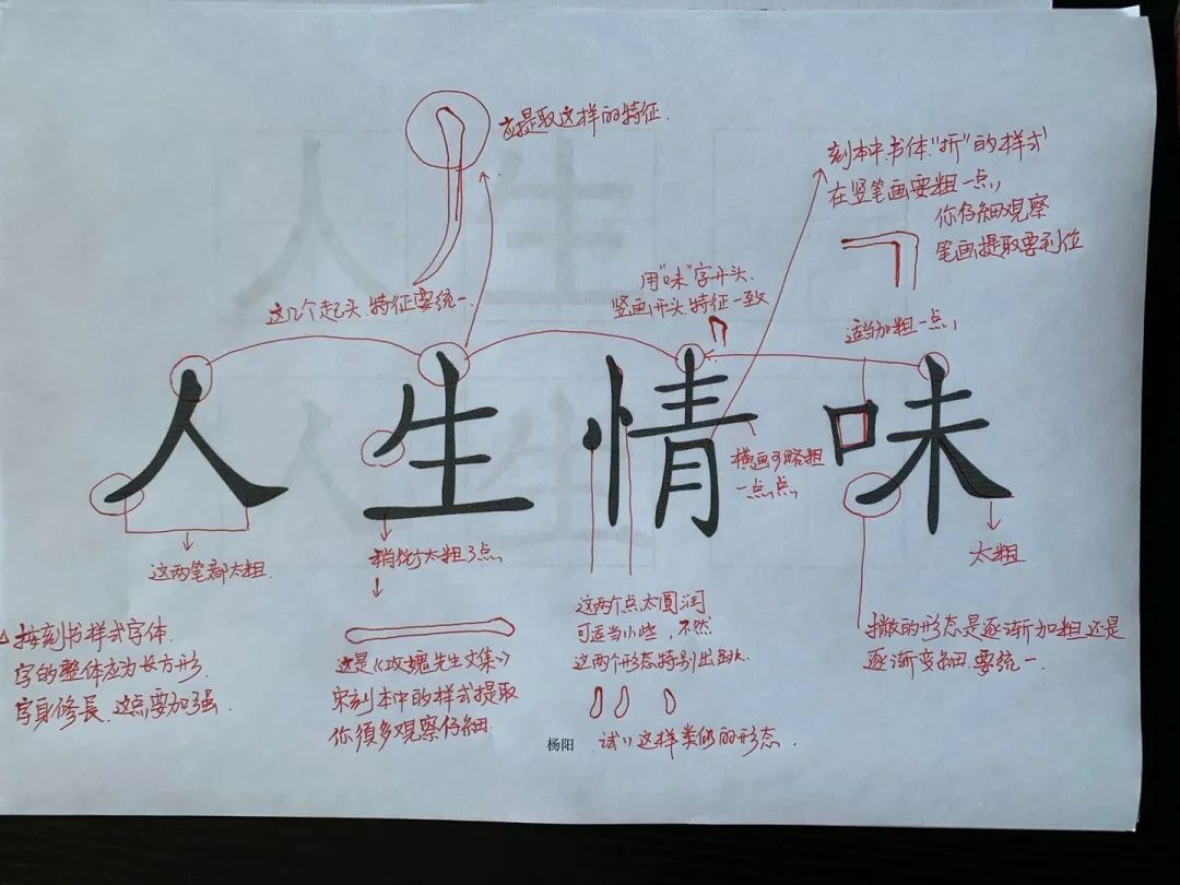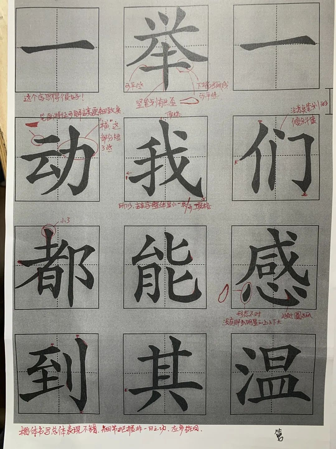 然而对于叶峰泉来说,最难的还是批改作业这一关,不能像现场教学一样及时纠错,他就把学生的每张作业打印出来,再做批注。对于学生写的每一个字,他都认真地在需要改进的地方旁边写上长长的批注。批改作业花了叶峰泉大量的时间,每天改到深夜,把改好的作业及时上传学习平台。他说,必须要当天改好,要不然学生的作业得不到当天的反馈,第二天的学习进度就会落下。叶峰泉认真的态度感染了学生,学生后来也不喊累,每天都非常认真地练习。