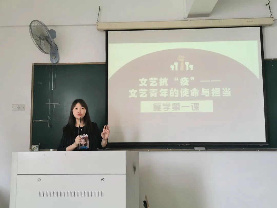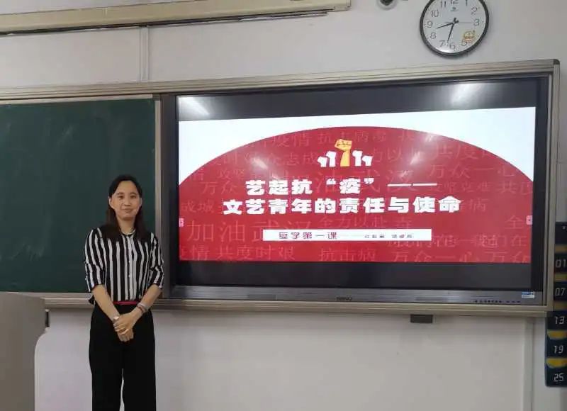 综合教研室负责人张义莎从文艺战线是抗击疫情的重要战线、以艺术振奋精神——文艺工作者投身战“疫”、展示青年担当——艺术学子的责任与使命展开讲授,结合历史与现实,引导学们生自觉坚守艺术理想,努力创作出传播当代中国价值观念、体现中华文化精神、反映中国人审美追求,思想性、艺术性、观赏性有机统一的优秀作品。