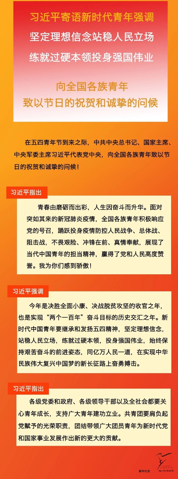 青年是国家未来的希望也是国家发展最强大的动力,面对突如其来的新冠肺炎疫情,全国各族青年积极响应党的号召,踊跃投身疫情防控人民战争、总体战、阻击战,不畏艰险、冲锋在前、真情奉献,展现了当代中国青年的担当精神,赢得了党和人民高度赞誉。作为青年人,我们要牢记五四精神,弘扬五四精神,做有担当有作为的向上青年!