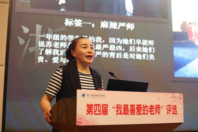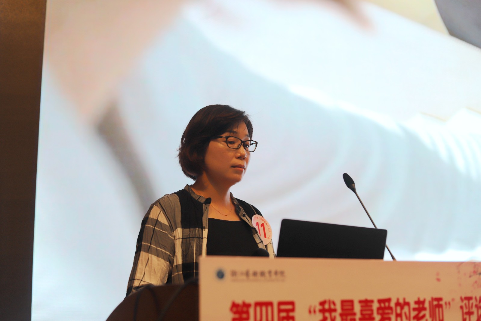 23名候选人按照抽签顺序逐一上台作精彩演讲,结合生动形象感人的VCRPPT演示,阐发对教书育人的感悟、杏坛耕耘的春秋,现场充满了温情与感动。他们中有在越剧传承路上默默耕耘的麻辣严师,也有用尽方式让思政课堂别样精彩的学生心目中的人气“偶像”;有为抗疫创作音乐作品,践行党员初心使命的声乐副教授,也有从教20年,为了让学生减肥跑完马拉松半程跑的漂亮舞蹈教师;有用心教学、把运动传递给每个人的大姐姐,也有生病住院还坚持给学生上网课的相声达人……