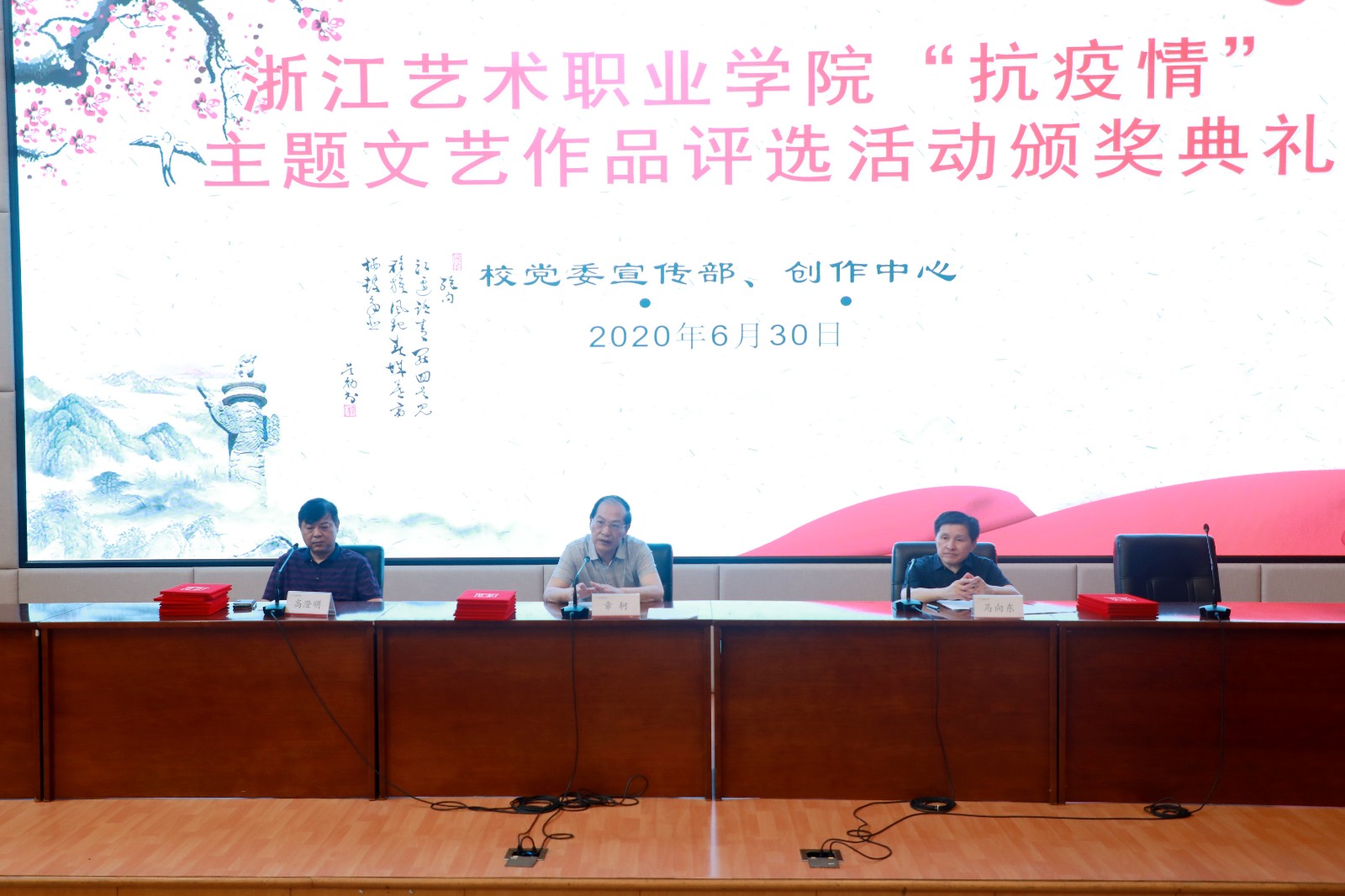 章轲发表了热情洋溢的讲话。他表示,疫情期间,我校师生认真贯彻落实习近平总书记重要讲话精神、党中央决策部署,积极响应省委、省政府号召,通过文艺作品歌颂和赞扬奋战在疫情防控一线的工作者,进一步坚定人民群众抗击疫情的必胜信念,发出浙艺最美的声音。师生们创作的优秀文艺作品体现了创作者的情怀、境界、责任、担当。文艺反应时代,讴歌时代,要以人民为中心,作品要充满正能量,奏响主旋律;体现了创作者的激情、勇气、智慧、追求。艺术来源于生活,是对生活的理解、认识和发现。真情所感,激情所至;体现了创作者的实践、探索、创作、高度。涌现了许多艺术精品,拥有一定的艺术水准。展现了文艺工作者坚持文艺为社会主义服务、为人民服务的坚定信心。