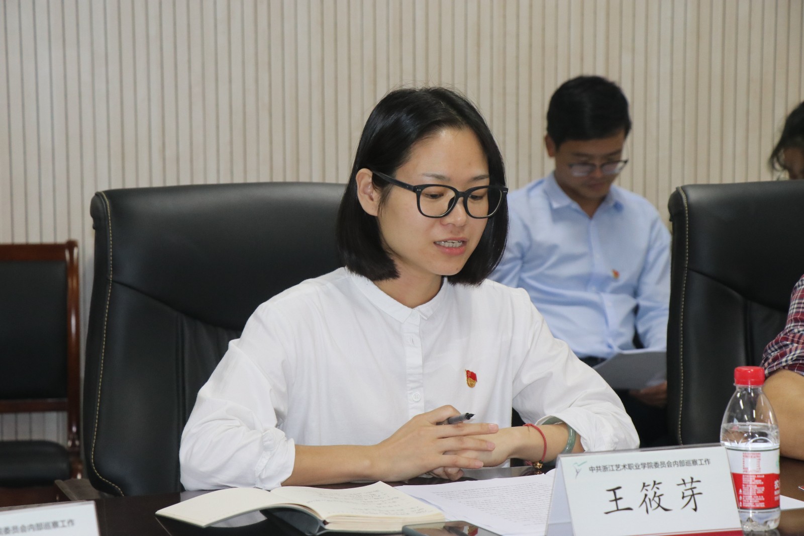 系党总支专职副书记王筱芽代表党总支表态,影视技术系党总支作为学校首轮巡察对象,将以刀刃向内的铁军气质,全面配合此次巡察工作的开展。