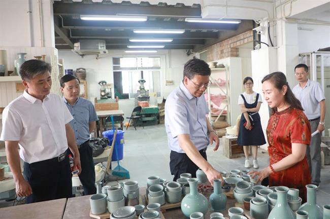 陈根芳实地查看了校园南门、音乐系、舞蹈系、公共基础课教室、医务室、临时观测点、食堂、学生公寓、陶艺实训室等,观看了音乐系、舞蹈系返校备战大艺节的学生排练,听取了学校秋季学期开学准备工作及新教学综合大楼建设情况汇报,对学校消防安全、环境安全、师生健康监测、应急情况处置、就餐管理等工作提出了具体指导意见。陈根芳表示,浙艺作为“双高”校,校风、学风、教学质量、育人氛围都抓得不错。国家高度重视职业教育,正开展本科层次职业教育的试点,对职业教育的鼓励和扶持当下都是机遇。浙艺要自觉站在本科层次职业教育的高度来谋划办学,无论是学科建设、专业建设、师资队伍建设,都要放在一个更高平台上,以更好培养文化艺术应用型人才。他勉励学校,浙艺历史很辉煌,未来会更辉煌。薛亮代表校党委表示,班子将一起努力,紧紧依靠全校师生,把学校建得更好,为“重要窗口”建设增添艺术职业教育成色。