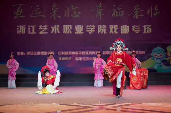 当晚,演出尚未开始,广场上已坐满了观众。越剧折子戏《打金枝•闯宫》《血手印•法场祭夫》《白蛇传•断桥》《梁祝•十八回》《碧玉簪•送凤冠》,越剧经典唱段《白蛇传•西湖山水还依旧》《红楼梦•金玉良缘》《红楼梦•葬花》《穆桂英挂帅•辕门外三声炮响似雷震》等节目将如水婉约的越剧声腔、耳熟能详的戏曲音乐、飘逸优美的舞姿身段展现给观众,观众们跟随节奏鼓掌、互动,其乐融融。当他们听到熟悉的唱段时,情不自禁跟唱起来。几位带着孩子看演出的家长说:“演出结束了,娃们还不肯离开,嚷嚷着要跟台上姐姐们一样学戏曲。” 参演的同学中有一部分同学是首次参加实践演出,她们说:“感谢老师们给我们这次机会,我们会更加努力,做好戏曲人追梦人该做的事。”