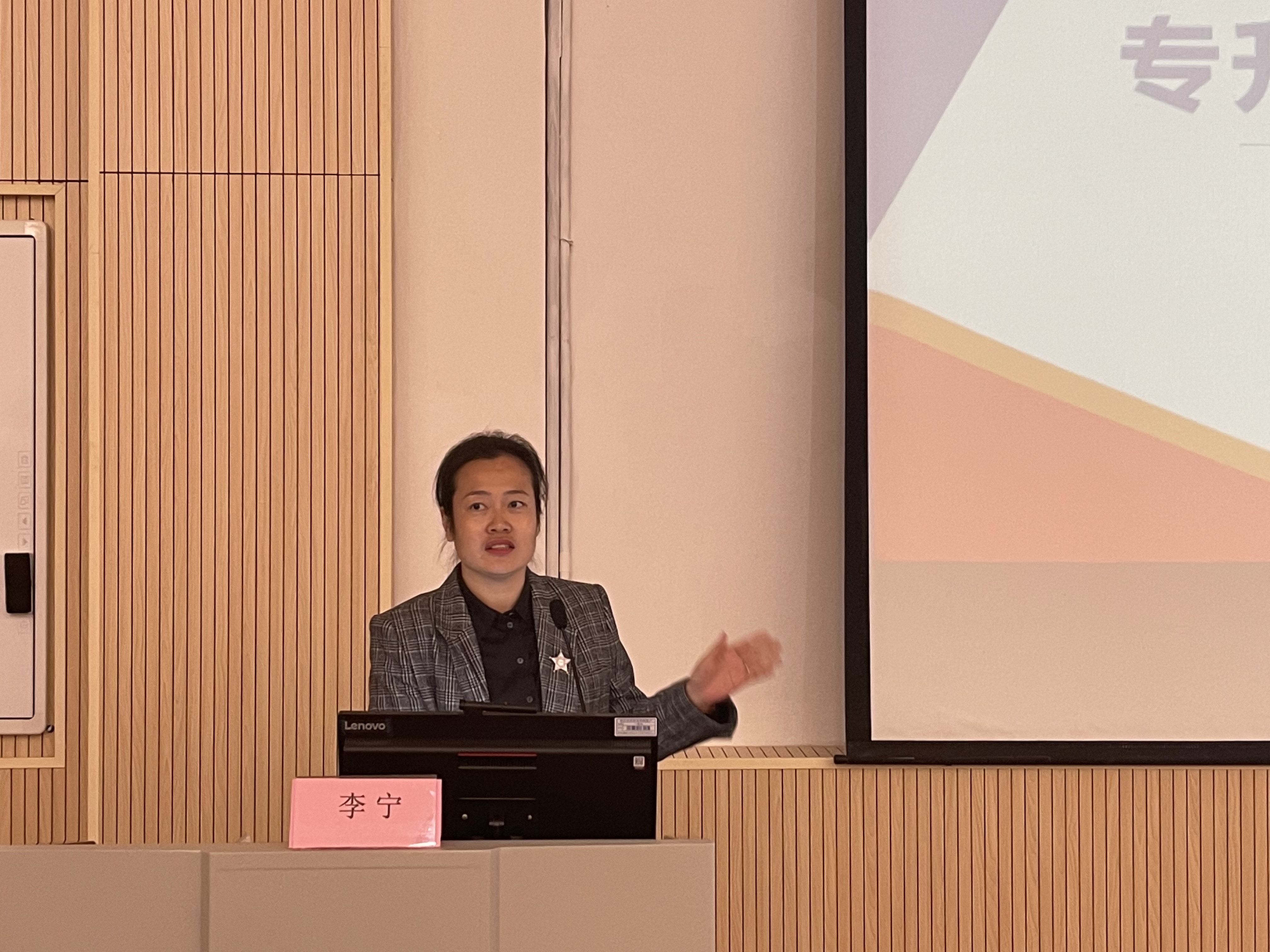李宁介绍了专升本对应的文化课考试要求,我校现有的专升本课程开设情况及选修时间和方式,希望同学们客观评估自身文化科目水平,根据自身情况选择是否参加校外培训。要明确目标,提前准备,积极备考;加强写作训练素材积累,勤练阅读和书写;积极与老师沟通,关注报考节点。