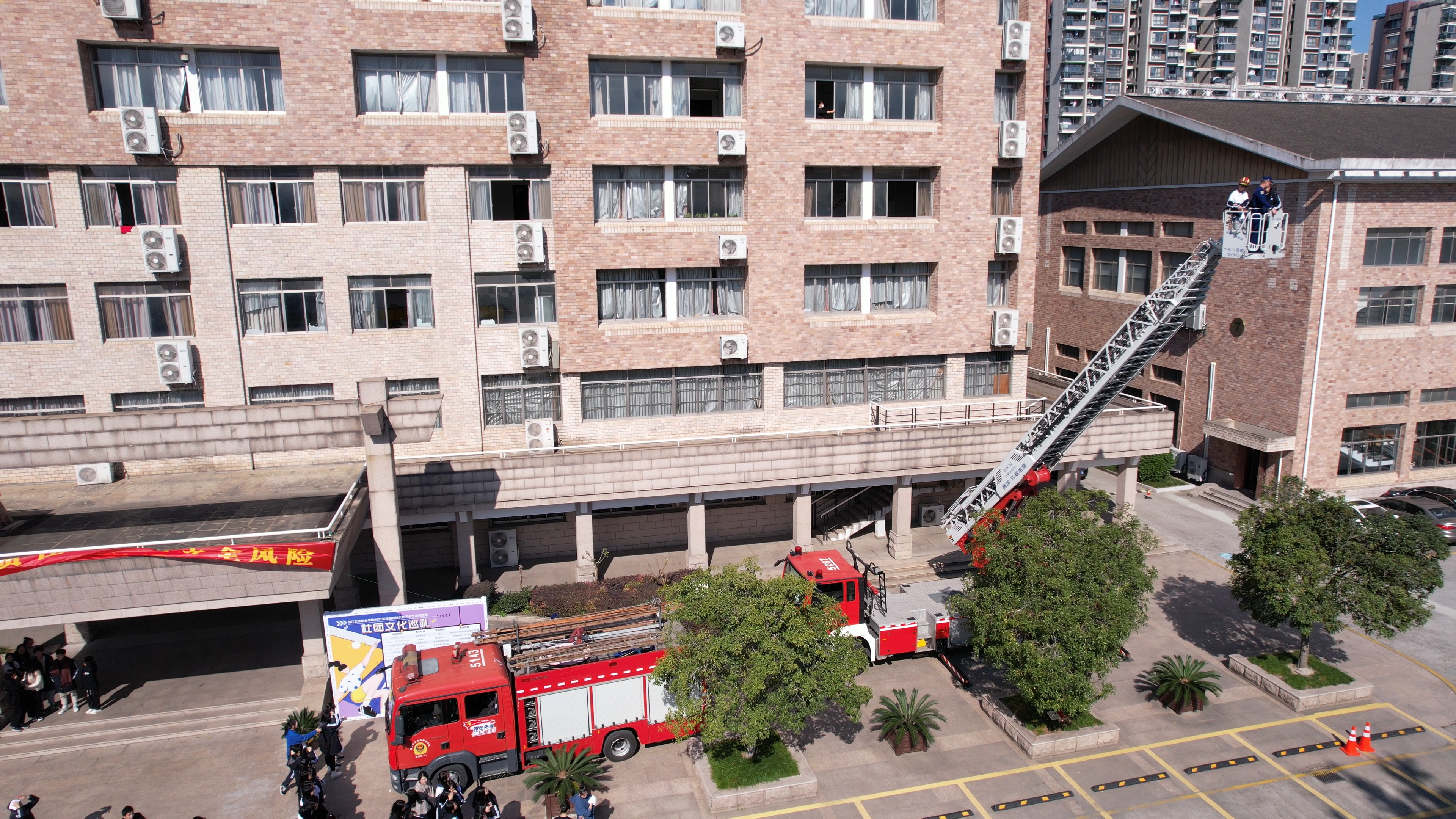 为提升广大师生的消防安全意识,保障学生公寓的住宿安全,11月10日,学校联合滨江区消防救援中队等部门,在校内学生公寓举办了2021年消防疏散演习、灭火器实操演练系列活动。
