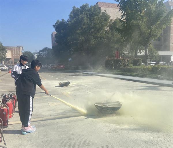 随后,参加疏散演习的师生在教学楼前集合,实地观摩由学校义务消防队员演示的灭火器使用方法,并进行实际操作。一位体验过后的同学说:“以前只是大概知道灭火器怎么用,今天试过后就真正清楚遇到火情要怎么办了,心里也更有底了。”同时,部分教职工也认真学习了灭火器的使用方法,并主动要求行了体验学习。