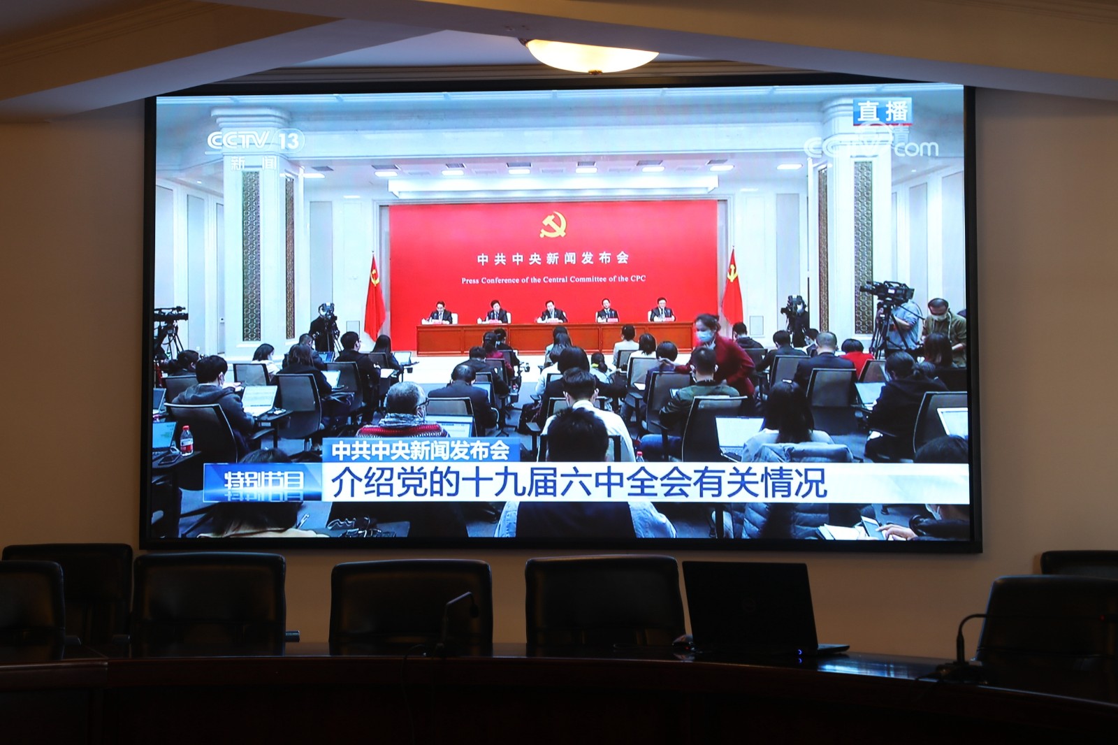 我校组织广大干部师生收看新闻发布会直播,通过网络、电视等形式关注学习十九届六中全会精神,展开讨论,分享交流心得体会。大家纷纷表示:百年来,党带领全国各族人民取得了伟大成就,让人备感自豪与振奋。