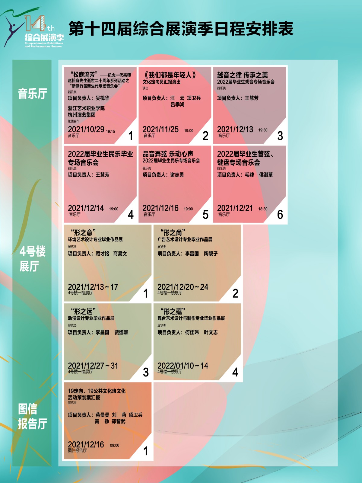 11月18日晚,“艺启艺久”音乐系2022届毕业生歌舞专场音乐会在浙江实验艺术剧场举办,拉开了我校第十四届综合展演季的帷幕。在10月27日音乐系举办的“松庭流芳”——纪念赵松庭先生逝世二十周年系列活动开始,我校综合展演季已进行了6项演出交流等活动。接下来,11月20日,以“讲美丽中国故事,绘共同富裕画卷”为主题的第四届浙艺金鹄电影节暨原创影像大赛,作为本届展演季的重头活动之一将在杭州瓶窑古镇举行。