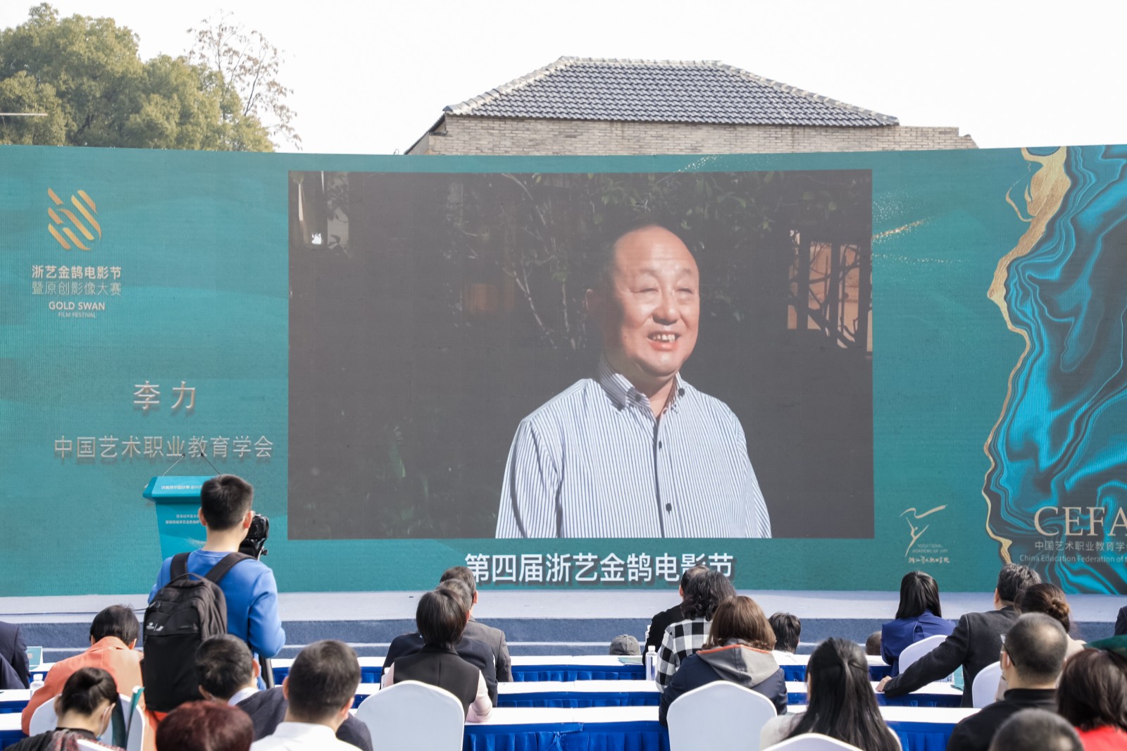 中国艺术职业教育学会会长李力通过视频为第四届浙艺金鹄电影节暨原创影像大赛的举办送上祝福。中国艺术职业教育学会已经和浙艺金鹄电影节携手走过三载,今年更是学会作为第四届浙艺金鹄电影节的主办方为电影节的茁壮成长扬帆领航。