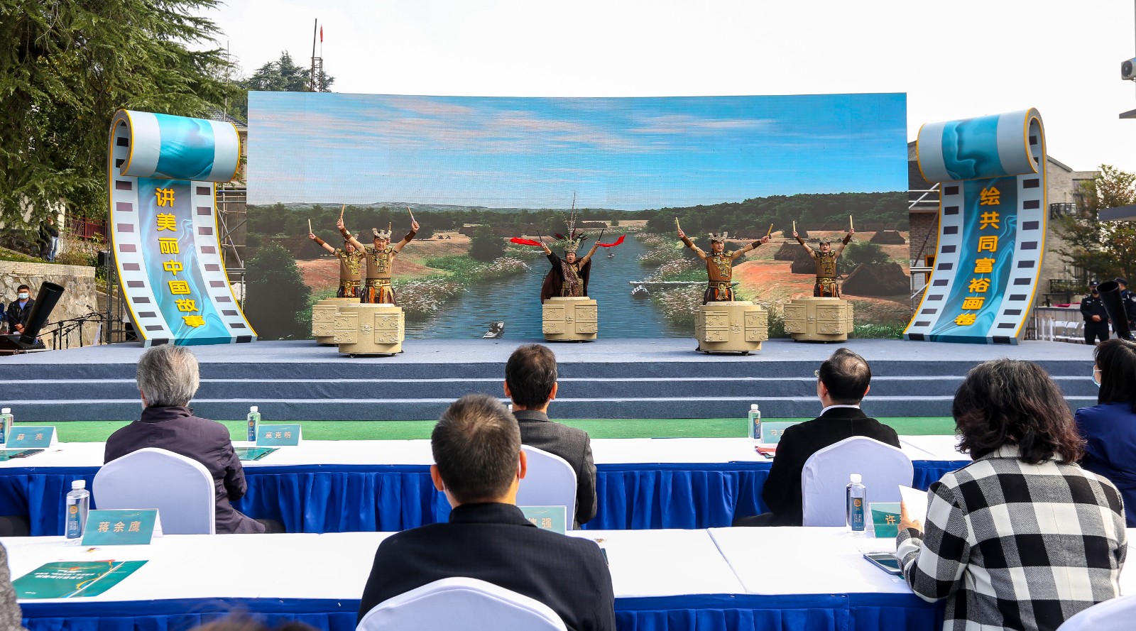 苕溪话共富主题行动暨第四届浙艺金鹄电影节启动仪式活动现场,余杭西部瓶窑、径山、黄湖、鸬鸟、百丈等五乡镇开启一系列“共富”行动:“西部富美”党建联盟交旗 、“西部富美”文旅产业联盟成立、杭州市数字经济产业服务基地揭牌、“共富共美”影像记录行动发布,杭州市摄影家协会采风创作基地落户同步启动。