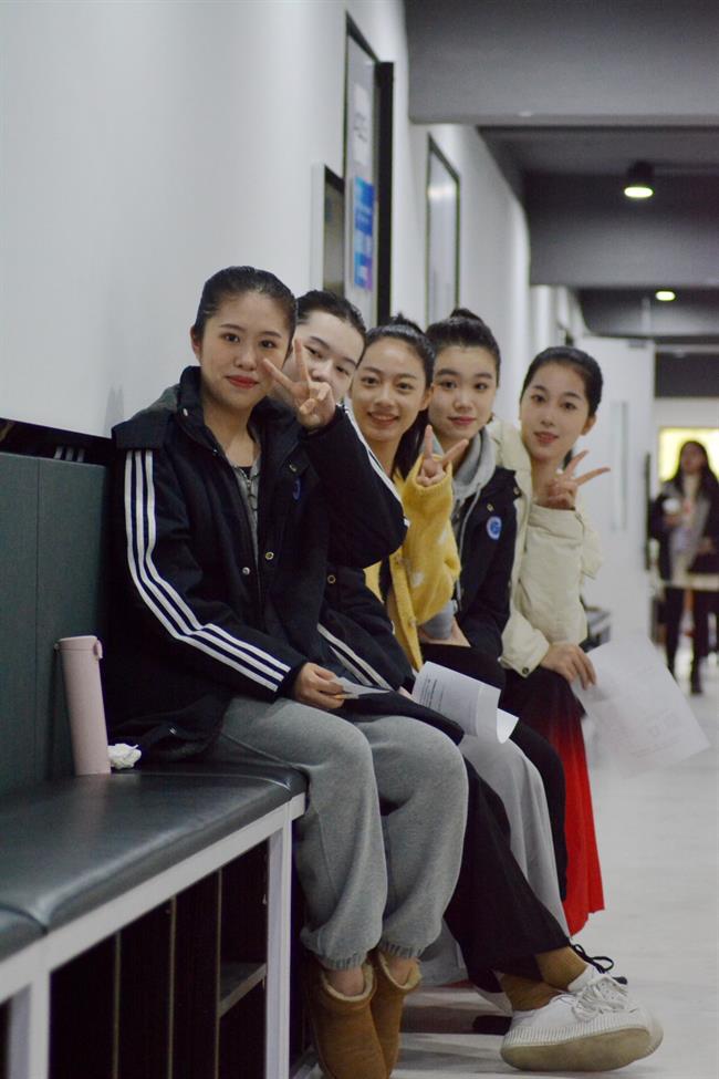 在影视表演类考场里,同学们要通过声乐、台词、形体、表演的形式充分展现自己多方面的才艺,5人一组即兴小品演出,需要在临时合作中迅速找到默契和灵感。一位报考影视表演的考生在考完后分享道,在准备的过程中,会出现练习时很顺利但一到模拟考试时就非常紧张的情况,但是一直在努力克服这种困难。在提及考场上的情况时,她的脸上洋溢着自信的笑容,“现在有一种如释重负的感觉,在考前非常紧张,害怕会出错,但是相信自己一定能行,就放松了很多,顺利地完成了考试。”