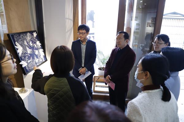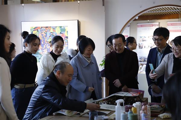 在校地合作中寻找共同富裕新路径——省文化和旅游厅副厅长刁玉泉一行参观浙艺·柯城校地合作成果展暨余东农民画展