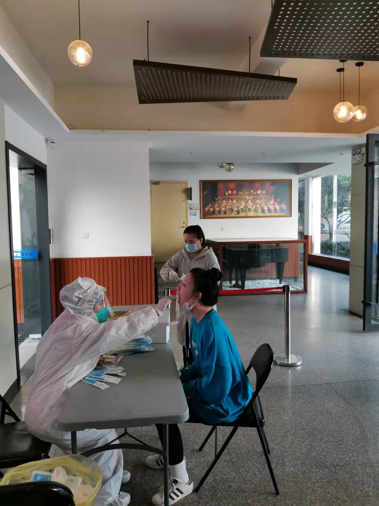 学校与卫生医疗检测机构合作,对教职员工重点人群和部分同学进行核酸抽测。
