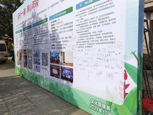 参与活动的20公共文化班学生冯戴智说:“疫情再度袭来,‘防疫’云活动让大家打起了十二分的精神面对疫情。我相信,只要我们能够‘同心防疫’,疫情一定能很快过去!”21公共文化班黄信说:“疫情面前没有旁观者,疫情防护没有局外人。我们坚信,齐心协力,积极配合,终会共同走出疫情的阴霾!”20公共文化班范何贇说:“这次抗疫签名的活动让我们明白在这个时候我们的责任就是戴口罩、少聚集、不给社会添麻烦。保护好自己也是保护好他人,保护好我们的美丽杭州。”