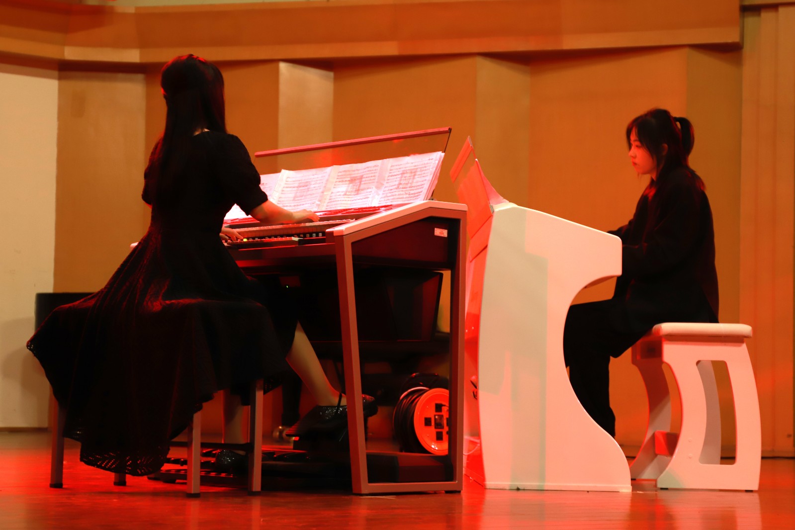 音乐会内容丰富,曲目上既有西方古典作品,又有中国传统名曲;演奏形式上既有独奏,也有协奏;乐器上“古典乐器之王”钢琴和“现代乐器之王” 双排键竞相辉映着,这是中西方文化的碰撞,更是传统与现代的交融。