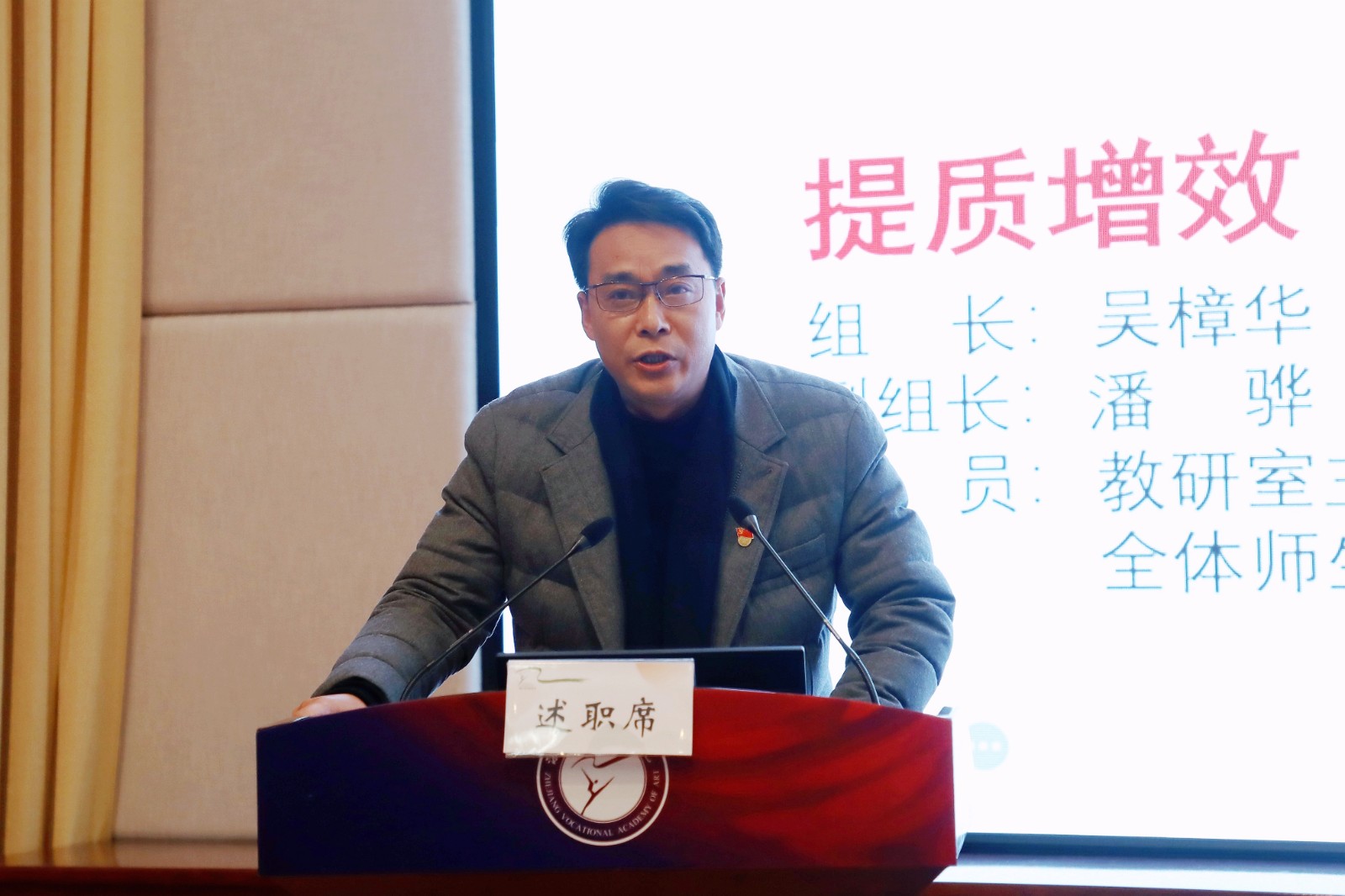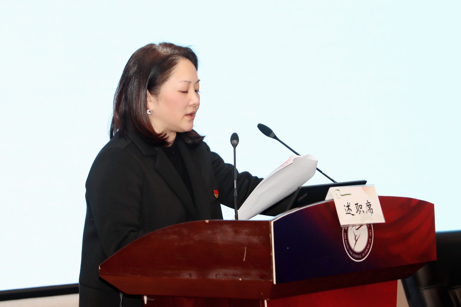 院长、党委副书记黄杭娟主持会议。校领导班子成员、全体中层处、科级干部,各基层党支部书记、全体组织员,基层党务工作者和副高以上专业技术人员代表参加会议。