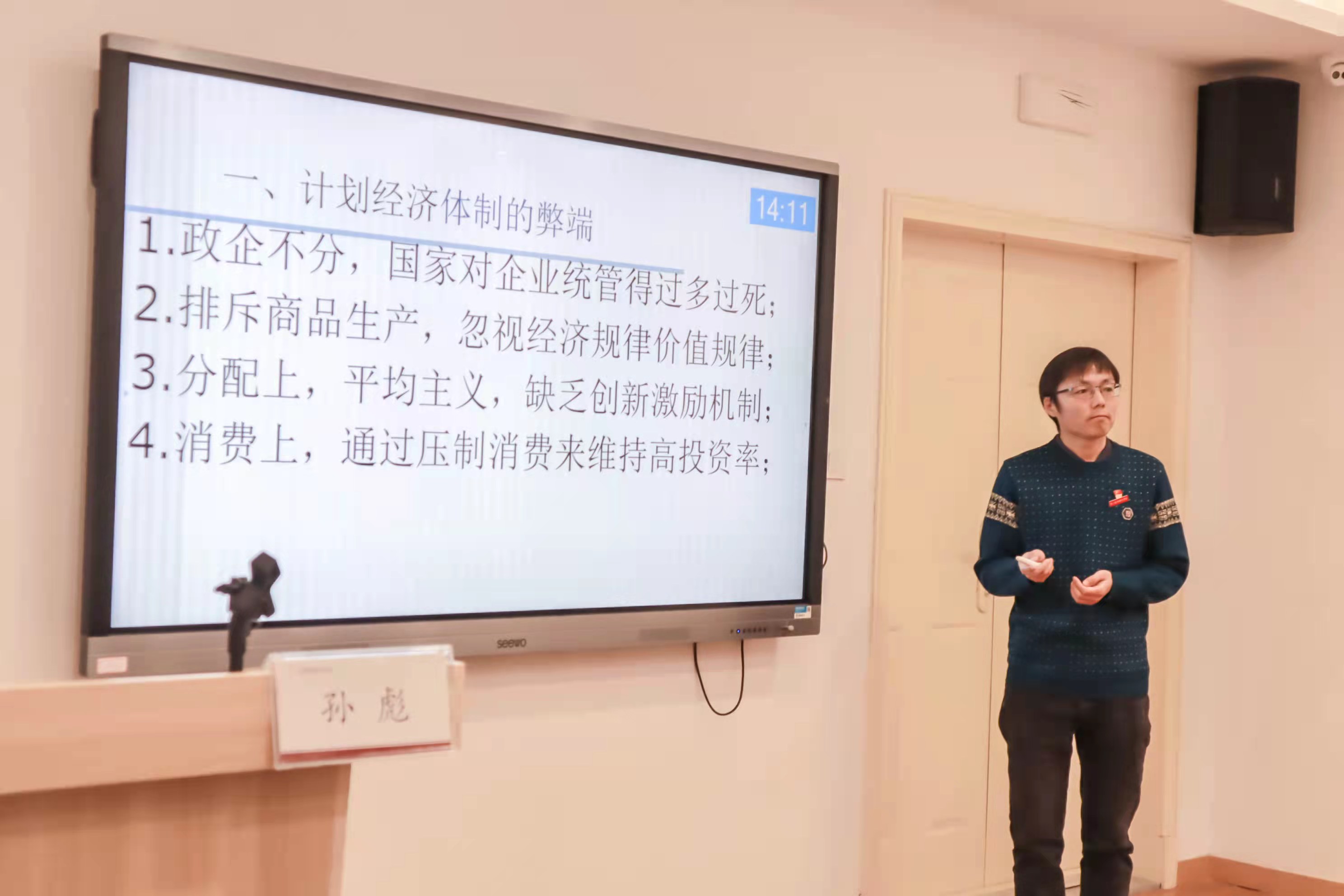 社会科学部副主任胡卓群介绍了学校概况和社会科学部近年发展情况,指明活动目的与主旨。社会科学部全体专职教师按此前抽签顺序依次进行教学展示。蔡秀从四大文明古国中唯有中华文明源远流长的角度阐释了新时代青年大学生为何以及如何坚定文化自信;高小伶通过展现李宁作为国产运动服饰潮落潮起的现象,理性分析了国潮“昨天”“今天”和“明天”境遇不同的原因以及中国创新经济中供给侧改革的必然性和必要性;陈丽丽以“七一勋章”获得者吕其明的四个梦想和“浙江好人”崔泽文的英雄事迹讲述道德模范的榜样力量;张义莎通过比较1933年上海的《东方杂志》和2013年中央电视台“个人梦与中国梦的征集活动”的“征梦稿”,层层剖析了不同年代不同阶层人们的不同梦想,引导同学们将个人梦想与社会梦想紧密结合,用文艺梦助力中国梦;王儿以热播电视剧《山海情》为导入,深入分析了打赢脱贫攻坚战中“怎么扶”的问题;刘志强从技术创新的视角讲述了中国高铁在“追跑”“并跑”和“领跑”的历程,刷新了同学们对“改革创新是新时代的迫切要求”的新认知;孙彪从市场经济理论分析的层面上论证了疫情大考下,中美两国经济体制的优劣之分;胡芊结合学情校情,分析了抗战年代、建设年代以及新时代不同文艺工作者相同的“为人民服务”的家国情怀。