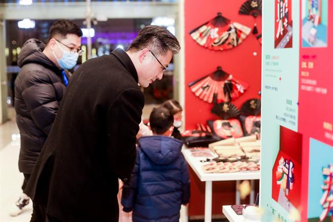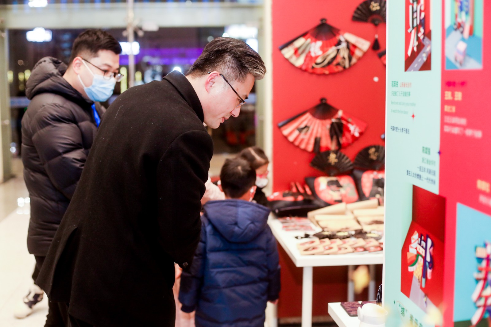 展卖现场气氛热烈,前来观看演出的观众们不停驻足欣赏,在各类创意产品中尽享“买买买”的乐趣,一系列具有浓厚文化底蕴的作品也引来了许多提问,现场的学生一一解答。