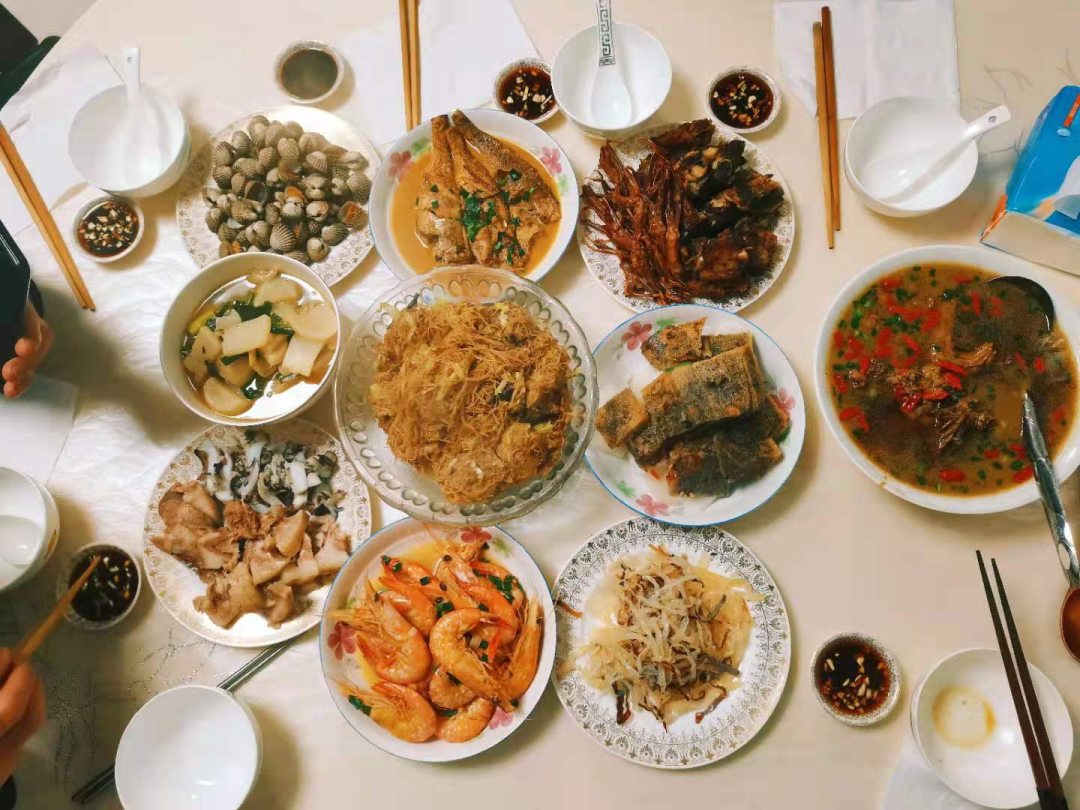 虽然除夕这天下了雨,但一家人还是聚在一起吃了团圆饭,年夜饭即是团圆饭,代表了一家人团聚,心头的充实感和幸福感不言而喻。