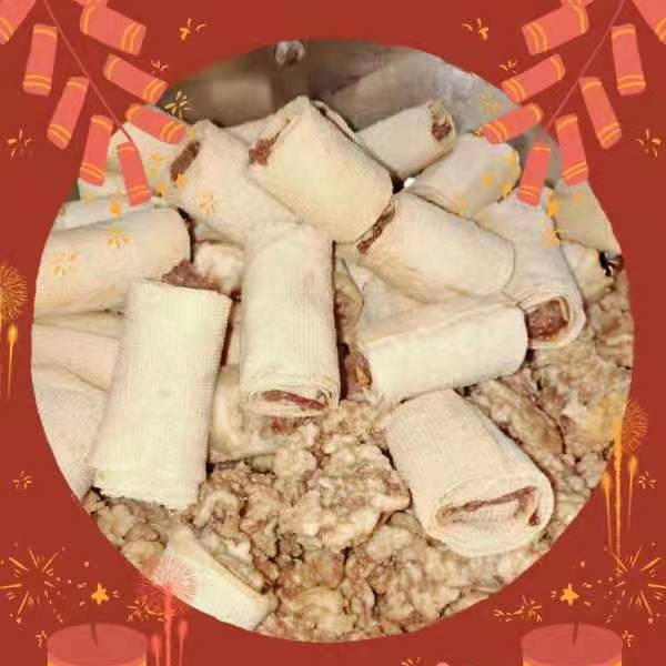 大家好,我是20编导陈骋,来自浙江台州。大家一起包饺子,玉米猪肉馅和荠菜猪肉馅。吃麦油脂,它以面粉糊烙制成饼皮,内裹有炒米面、肉片、猪肝、蛋皮、鱼肉、豆腐片,还有金针、木耳、粉丝、笋丝、鸡蛋、韭菜丝、咸菜等。