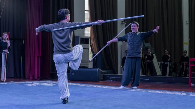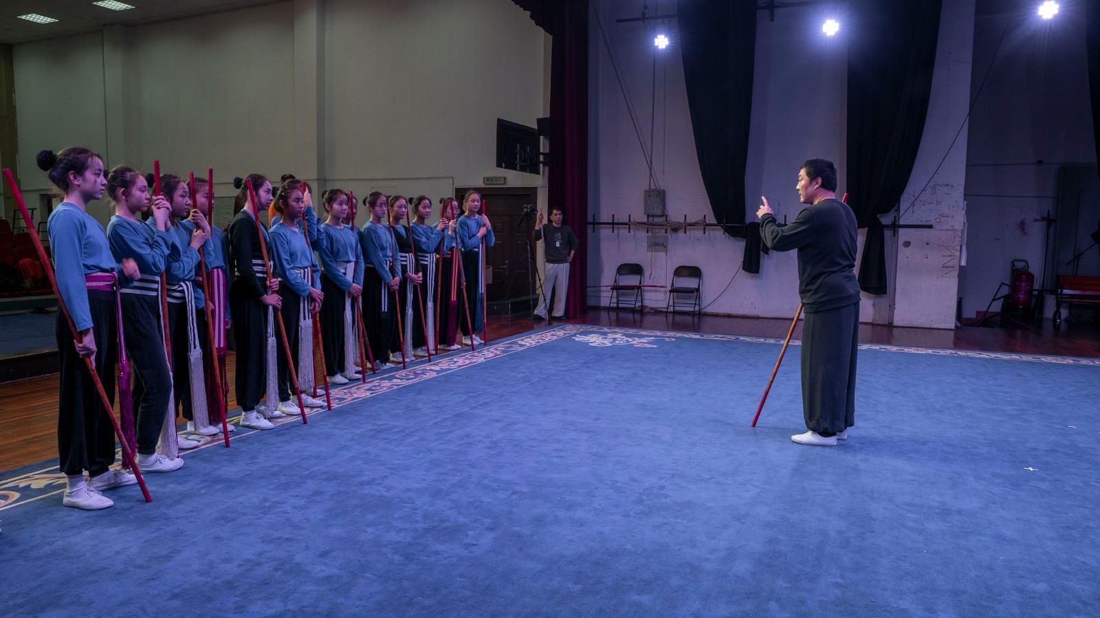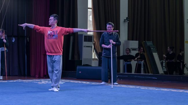 授课过程中,奚中路亲身示范,悉心教导。除了剧目相关知识的教授,奚中路还根据学生实际情况针对性地指导学生跑圆场、练习跨腿、盘腿等基础功法。在为期一周的授课过程中,学生们获益良多。19小百花班陈子心说:“在老师给我们摆好动作之后,一开始我们耗不了多久手就开始抖了,肩膀、手掌、后背也开始不受控制,但老师告诉我们要坚持再坚持,逐渐可以坚持更长时间,到现在有些动作不需要老师说,就知道该放在哪儿了。‘耗’让我们的动作更加精炼,也让我懂得了‘坚持’。”