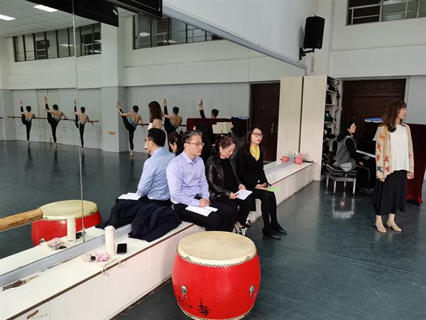 薛亮先后走进2017级小舞蹈班女班、男班的基训课课堂和2017级舞蹈表演(五年一贯制)男班的民间舞课堂,边看边听,认真做着记录。听课之余,他对各专业各学制、课程设置、招生情况、升学情况、就业情况、教学环境设施等方面进行了深入了解。舞蹈系党总支书记曹亮红等陪同听课。