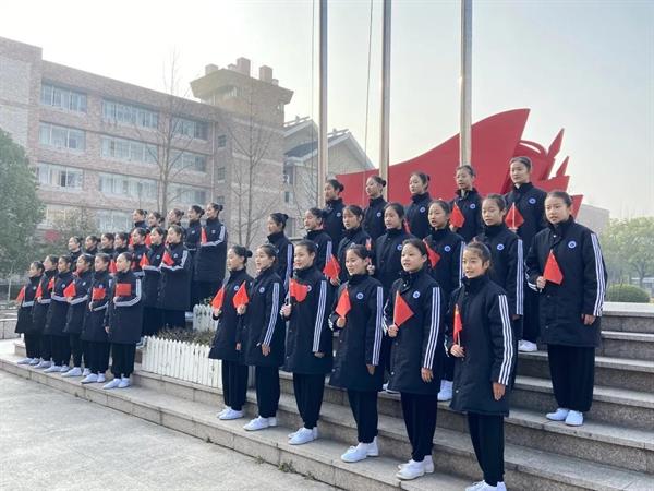 学生会主席黄霜霜带领戏曲学院全体学生进行国旗下宣誓,明史立志,以铮铮誓言致敬建党100周年。作为浙艺戏曲人,他们将练就过硬本领,砥砺从艺初心,为传承和弘扬中华优秀传统文化、建设社会主义现代化强国贡献自己的青春力量。在2019级小百花班全班同学带领下,戏曲学院师生同唱一首歌《没有共产党就没有新中国》。2019级小百花班陈子心和2017越剧一贯班张宁说:“通过庄严的升旗仪式,我们深深意识到,作为未来祖国发展建设事业的接班人,我们要从当下、从自身做起,精艺修为,明德立志,以自身作为致敬建党百年。”