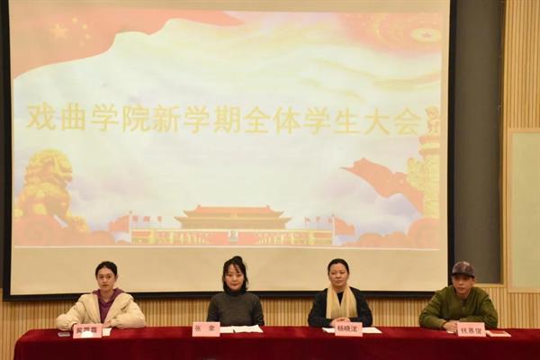 2021年是中国共产党建党100周年,是全面建设社会主义现代化国家新征程开启之年,是我校“双高”建设全面推进和“十四五”规划开启之年,也是戏曲学院提质培优的内涵建设之年,更是戏曲学院全体学生争先创优的院风学风建设之年。为贯彻落实学校《关于落实立德树人根本任务,推进学生文明行为养成实施意见》《学工部关于开展“劳动精神融入生活 寝室美化装点室界”文明寝室建设活动通知》等活动精神,3月19日晚,戏曲学院在七号楼举行新学期全体学生大会,并发起《明史知礼、修身精艺——浙艺戏曲追梦人行动倡议》。党总支专职副书记杨晓浤、团总支副书记张聿,各班班主任、辅导员和学生会成员、团员、学生代表参会。