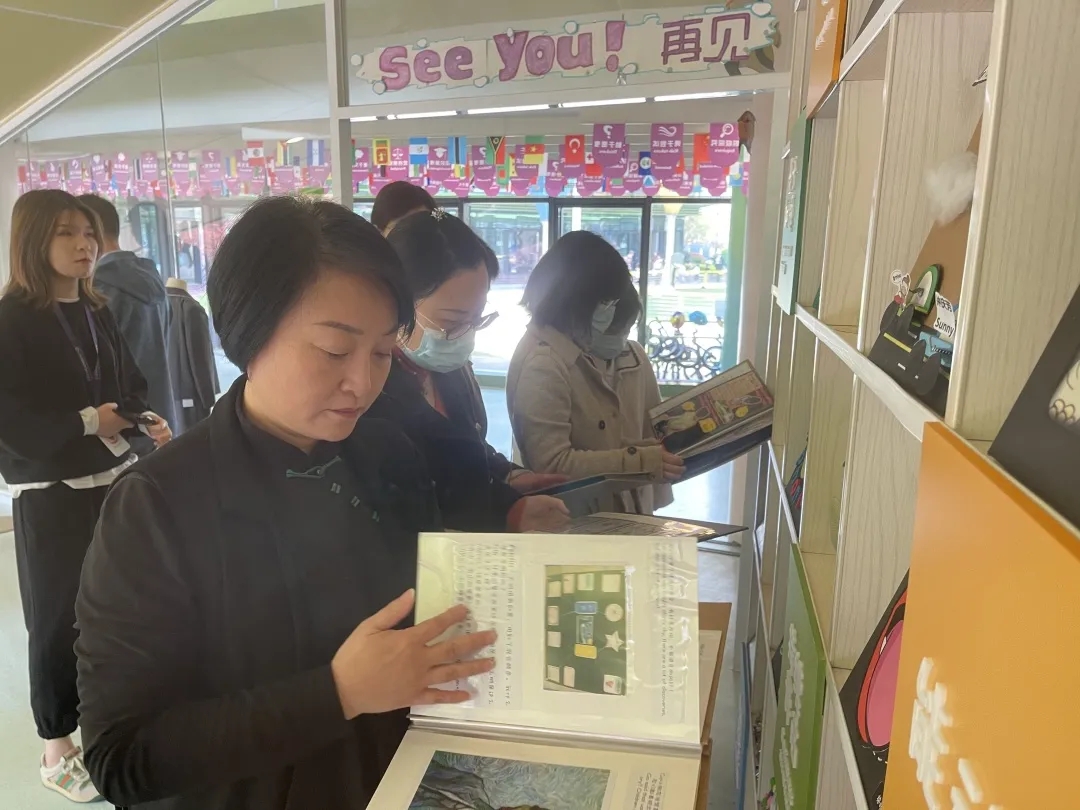 陈辉带领考察团参观了幼儿园教学区域、艺术教室、图书馆、木工坊等,详细介绍了幼儿园的发展历程与课程特色。