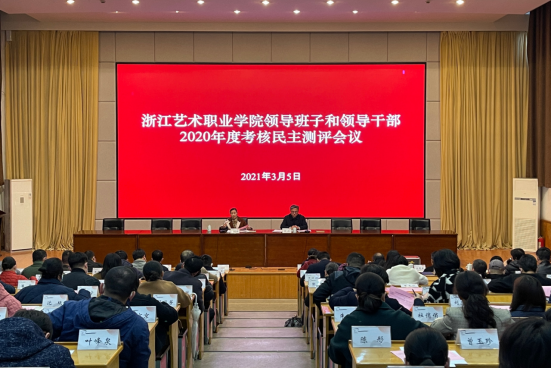 校党委书记薛亮代表领导班子作2020年度工作报告。他指出,2020年学校领导班子坚持以习近平新时代中国特色社会主义思想为指导,认真贯彻落实《国家职业教育改革实施方案》《职业教育提质培优行动计划(2020—2023年)》《浙江省深化产教融合推进职业教育高质量发展实施方案》,强化“窗口意识”,聚焦“双高”建设和新冠肺炎疫情防控,以守护师生健康为底线,以人才培养为中心,全面从严治党,深化改革创新,完善学校治理,提升办学内涵,国家“双高”专业群建设顺利推进,成功入选省“双高”院校建设单位,为助力“重要窗口”建设贡献了浙艺力量。