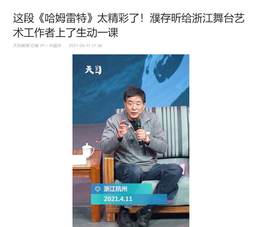 天目新闻:这段《哈姆雷特》太精彩了!濮存昕给浙江舞台艺术工作者上了生动一课