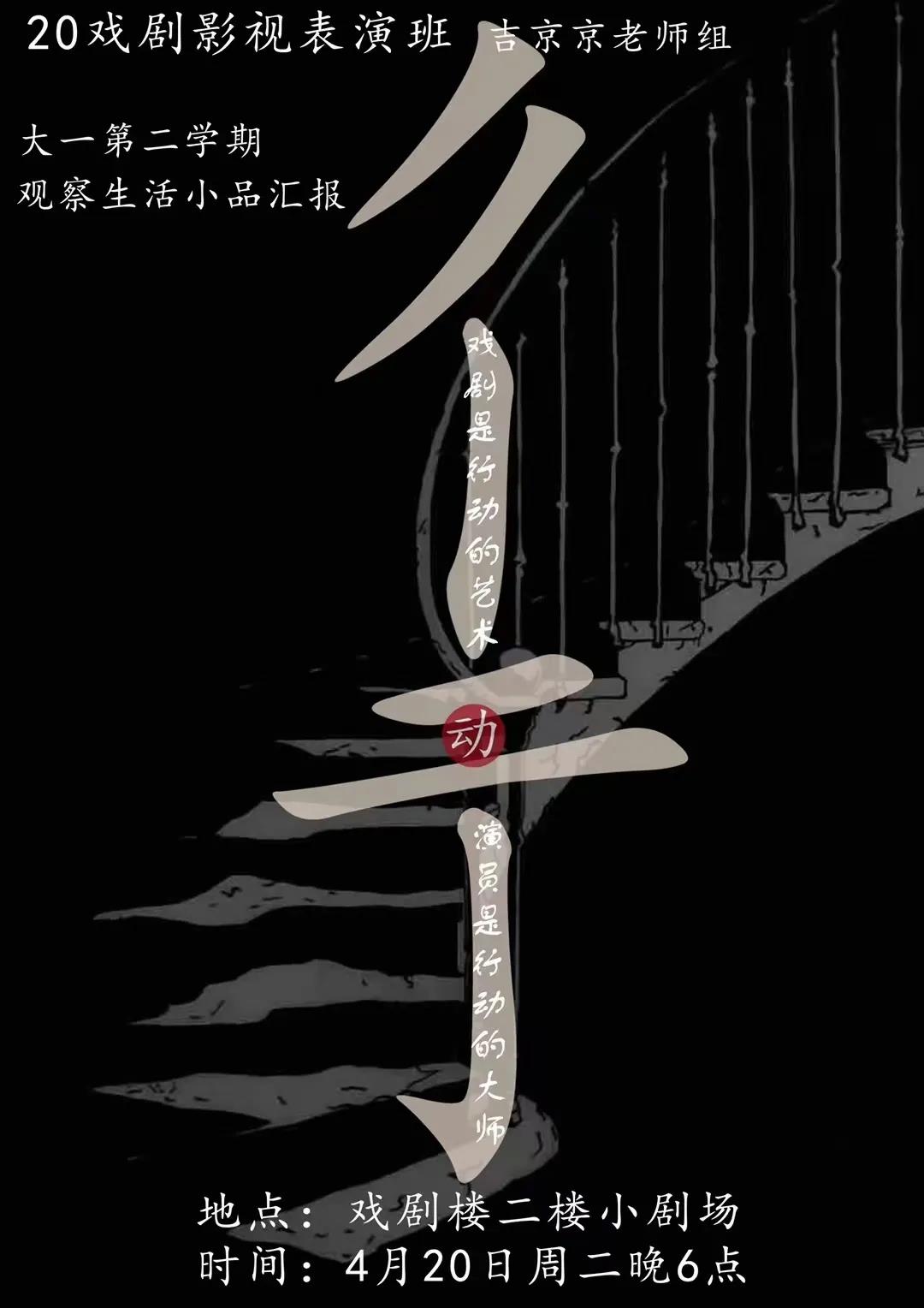 4月16、20日,戏剧系在2号楼小剧场举行2020级戏剧影视表演班观察生活交流小品汇报会,由教师牛硕、吉京京指导,戏剧影视表演教研室全体教师到场观看。