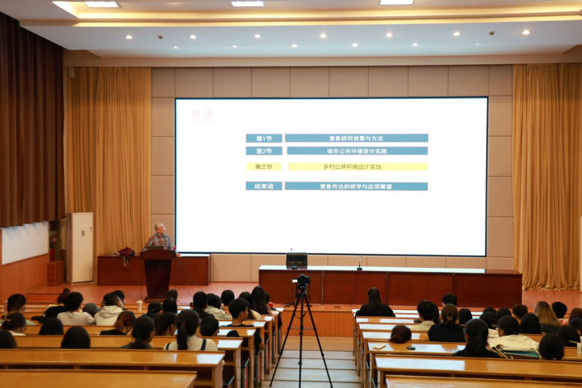 王炜民通过“意象研究背景与方法、城市公共环境设计实践、乡村公共环境设计实践、意象传达的研学与应用展望”生动地简述了城乡设计中的诗意传达,并与同学展开交流互动。同学们提出自己的疑惑和构想,王炜民一一回答,对同学们的提问也给予了高度的评价,他希望通过思维碰撞,进一步提升同学们的专业素养和水平。