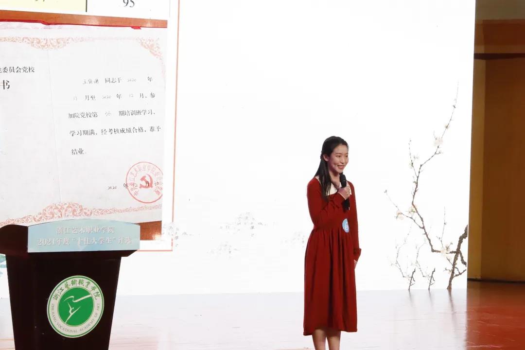 获得提名奖的王佳璐则是第二次站在同样的舞台,此前她曾在学校党校微课比赛中展示了自我。她说回顾入学这些日子,既有连续获得校级特等、一等奖学金的欣喜,也有在浙江省音舞节上的倾情演出,在良师益友的教导和自身的刻苦学习下,我收获了许多,既有取得的进步,也有失败后的苦恼,但还是在这得失之间,成功与失败之间长大了、成熟了、进步了。