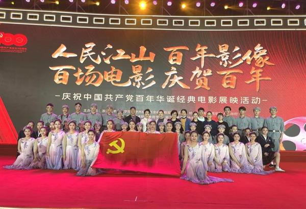 随后,全体党员前往瓶窑老街,参加“人民江山百年影像  百场电影庆贺百年”庆祝中国共产党百年华诞经典电影展映启动仪式。党员教师、 戏曲学院副院长周伟君与戏曲学院师生一起为当地居民、游客表演了越剧新唱《七律·长征》《为女民兵题照》《卜算子·咏梅》《妈妈教我一支歌》等精彩节目,以戏曲艺术的表现样式,将大无畏的革命精神和时代奋进的主旋律弘扬于舞台之上、传播于民众心中。