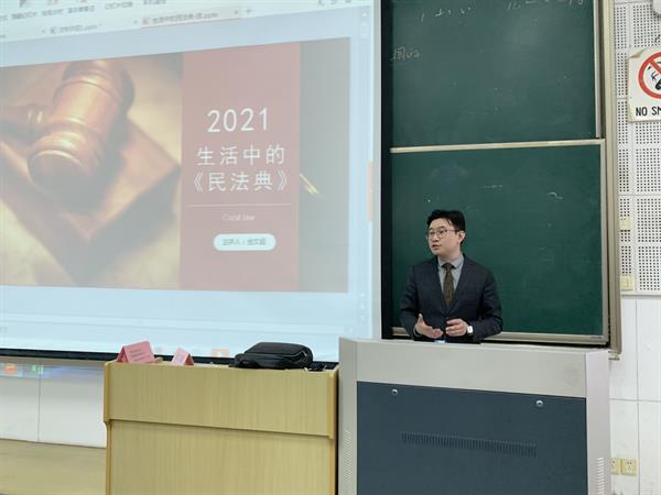 讲座共分两场。第一场讲座由金文超律师以“生活中的《民法典》”为主题,向同学们详细介绍我国民法典颁布的基本情况、基本原则以及包括总则、物权、合同、人格权、婚姻家庭、侵权责任等内容的分编理论。各章节块面均是以案说法,兼具学理性和故事性。鲜活生动的案件进一步引导同学们树立规则意识、法律意识,更加清晰地界定“什么可以做、什么不能做”,明确自身行为界限,从而起到预防违法犯罪、减少矛盾纠纷的效果,彰显司法力量与法律温度。