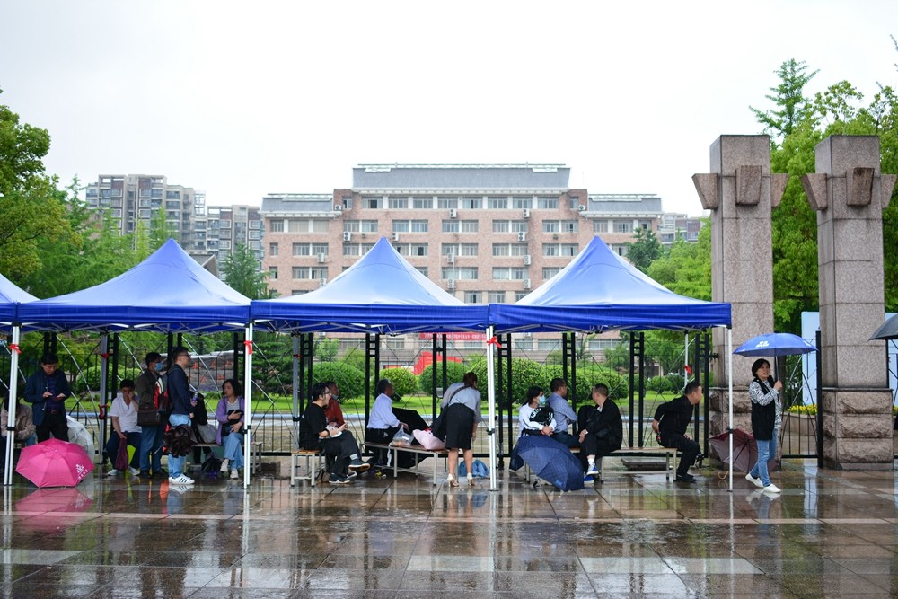早晨的倾盆大雨没有阻挡考生的脚步一大早就有考生陆陆续续到达候考厅,校门口聚集了许多家长,有家长谈到,“入学即入编的招生政策很吸引人,这个考试难度比较大,因为既要通过专业素质加试,又要比拼文化课成绩。”一位笑容洋溢的淳安考生坦言:“我已经做好了充分的准备,希望可以顺利通过加试。”
