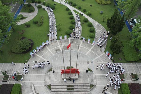 仪仗队迈着整齐而坚定的步伐缓步进入,“升国旗,奏唱国歌,行注目礼,敬礼!”随着中华人民共和国国歌的响起,鲜艳的五星红旗冉冉升起。在场的每一个人都向国旗行着注目礼,饱含着对祖国崇高的敬意。