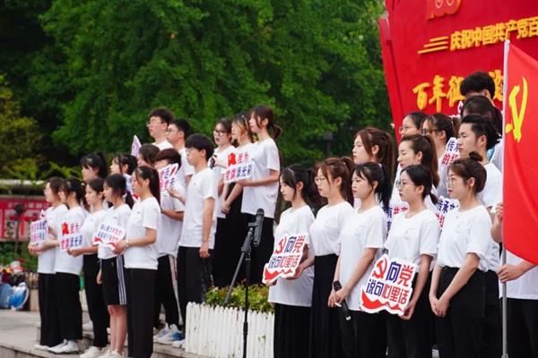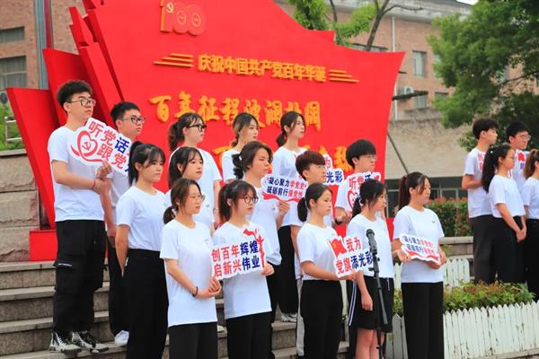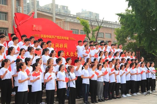 师生合唱《在灿烂的阳光下》,师生们用青春歌唱和赞颂祖国,唱出了共产党的伟大成就,也唱响了时代的主旋律。