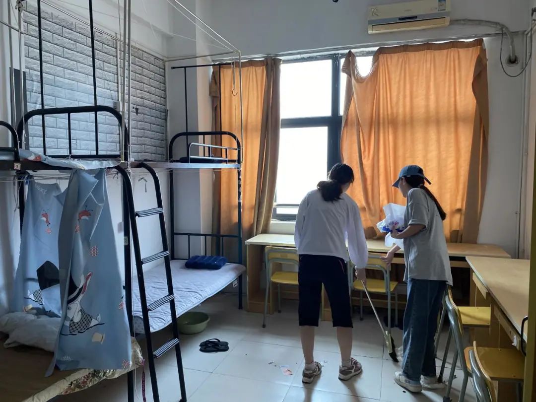 为发挥好学生干部先锋模范作用,上好毕业生文明离校的最后一课,6月11日下午,美术系团总支开展“我的寝室我守护,留下一间洁净宿舍”行动。19级团学干部和入党积极分子带头清理打扫毕业生寝室。