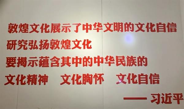 展厅展陈了莫高窟的石窟艺术,分为早期、中期、晚期三个阶段。讲解员带领师生走近敦煌壁画艺术,讲述莫高窟的大事记。敦煌石窟和敦煌藏经洞出土的文物浓缩了中古敦煌的历史,形象地记载了在开放背景下欧亚文明的互动、汉民族与其他民族的交融;反映了4—14世纪一千多年间佛教及艺术的流传及流变;保存了丰富生动的中外艺术形象及艺术的源流传承;展示了中古时期广阔的政治、军事、文化、科技等社会生活的场景,具有超越时空经久不衰的魅力,在不同时代、不同民族、不同信仰、不同地域的人们中间产生共鸣。这也正是中华民族以自己的优秀文化为世界做出的贡献之一。