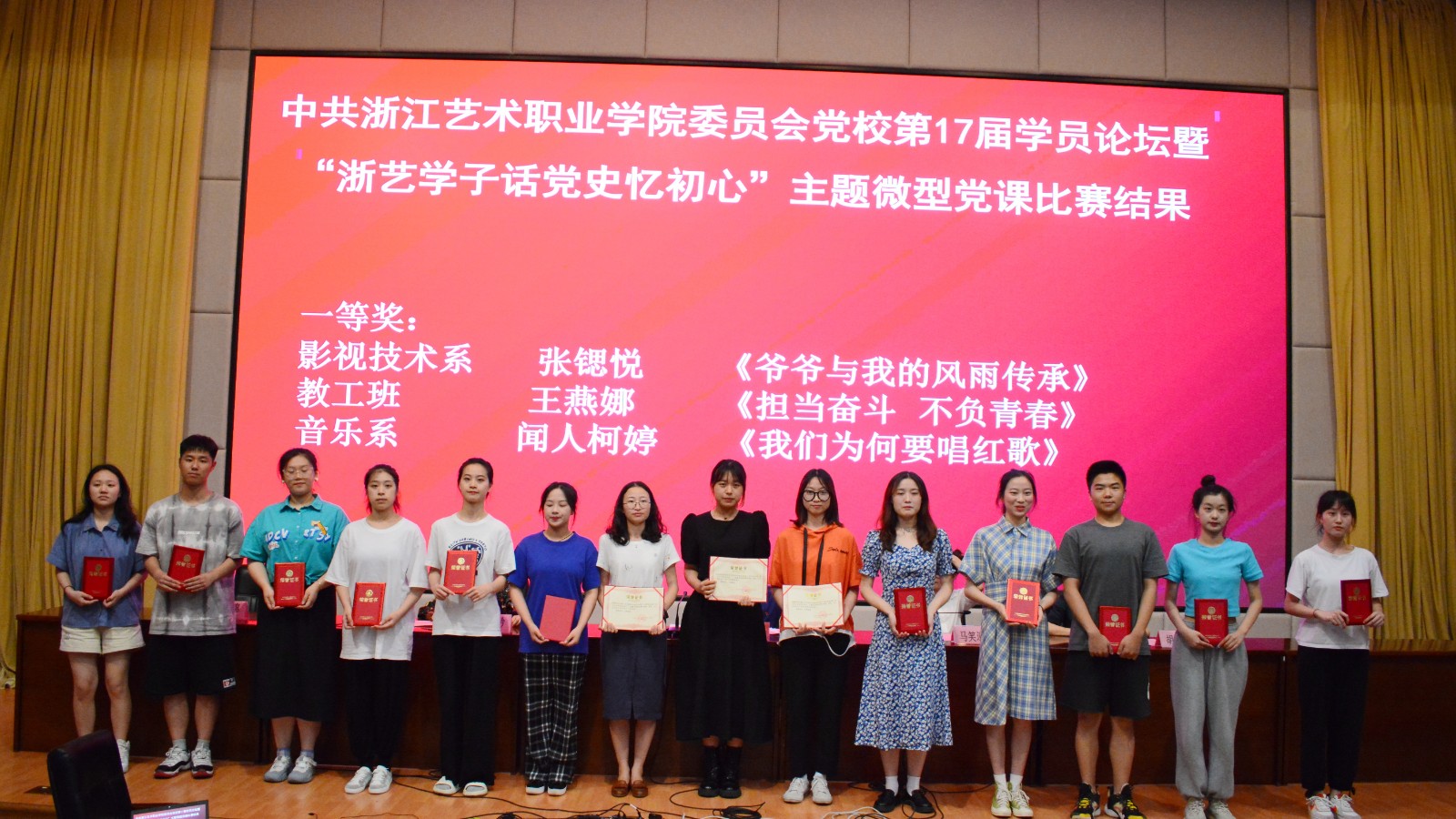 大会对党校培训班先进集体、优秀班主任、优秀学员、优秀论文获得者、第 17 届党校学员论坛暨“浙艺学子话党史忆初心”微型党课比赛获奖学员,2020年度新闻宣传工作先进集体、先进个人和优秀学生记者进行了表彰。