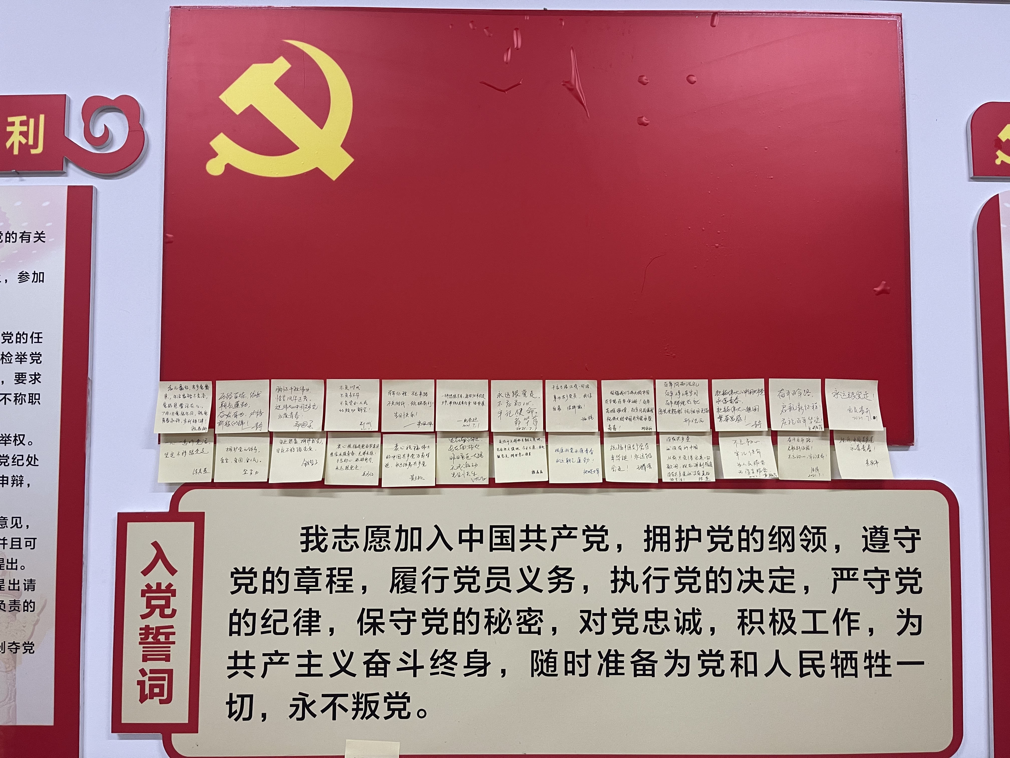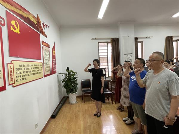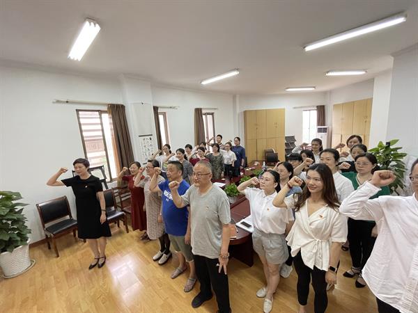 全体教职工围绕在党旗下,重温入党誓词。铿锵有力的誓言与承诺,将落实到每一位党员教职工的实际工作中去,为学院高质量发展、高水平建设继续奋斗。