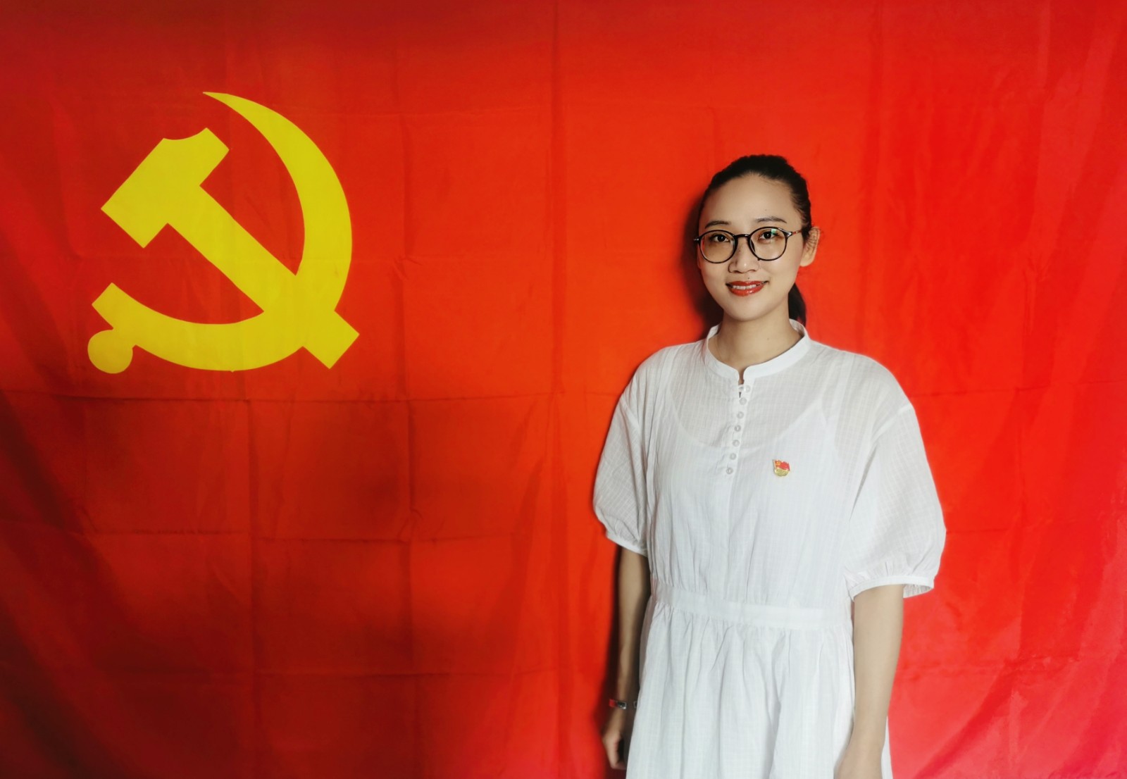 党员王园园:回首百年,党旗所指,波澜壮阔,将中华民族由命途多舛推向伟大复兴,实现国家富强、人民幸福。祝福您,一百年,正青春!感谢您,永远心向党!